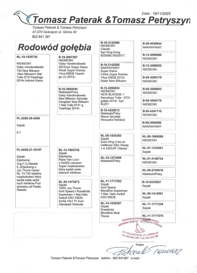 Płeć: samica Hodowca - rasa: oryg. Tomasz Paterak & Tomasz Petryszyn Zakończenie: 18.12.2025 godz. 20:22
