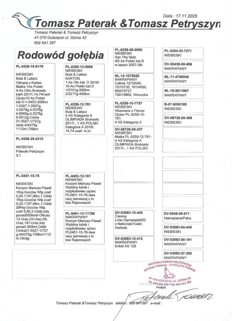 Płeć: samica Hodowca - rasa: oryg. Tomasz Paterak & Tomasz Petryszyn Zakończenie: 18.12.2025 godz. 20:30