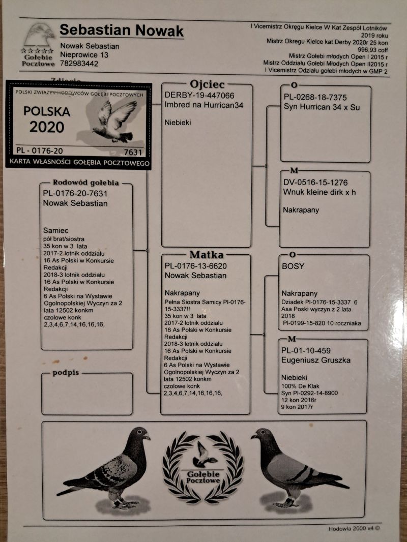 PL-0176-20-7631 inbred "Hurrican 34" x siostra 6 Asa Polski kat. Wyczyn 12502kkm