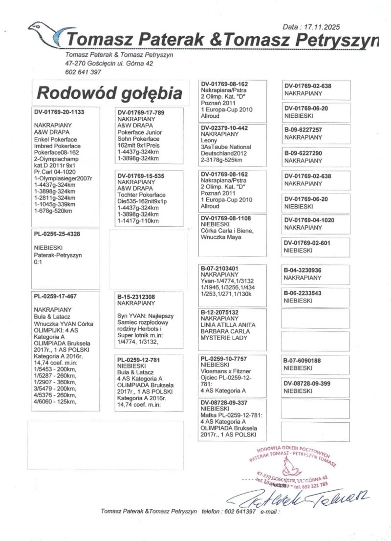 Płeć: samica Hodowca - rasa: oryg. Tomasz Paterak & Tomasz Petryszyn Zakończenie: 18.12.2025 godz. 20:38