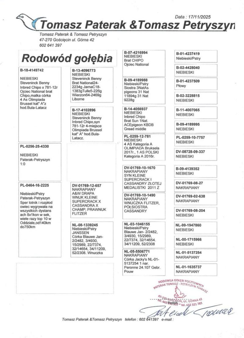 Płeć: samica Hodowca - rasa: oryg. Tomasz Paterak & Tomasz Petryszyn Zakończenie: 18.12.2025 godz. 20:40