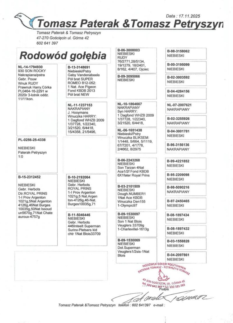Płeć: samiec Hodowca - rasa: oryg. Tomasz Paterak & Tomasz Petryszyn Zakończenie: 18.12.2025 godz. 20:46