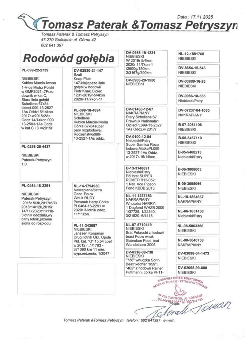 Płeć: samiec Hodowca - rasa: oryg. Tomasz Paterak & Tomasz Petryszyn Zakończenie: 19.12.2025 godz. 19:38