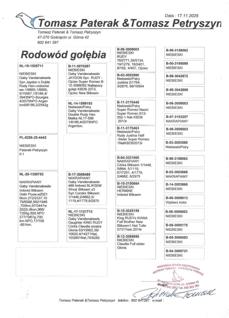 Płeć: samica Hodowca - rasa: oryg. Tomasz Paterak & Tomasz Petryszyn Zakończenie: 19.12.2025 godz. 19:34