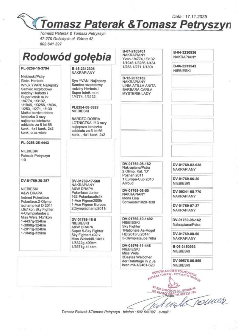 Płeć: samica Hodowca - rasa: oryg. Tomasz Paterak & Tomasz Petryszyn Zakończenie: 19.12.2025 godz. 19:32