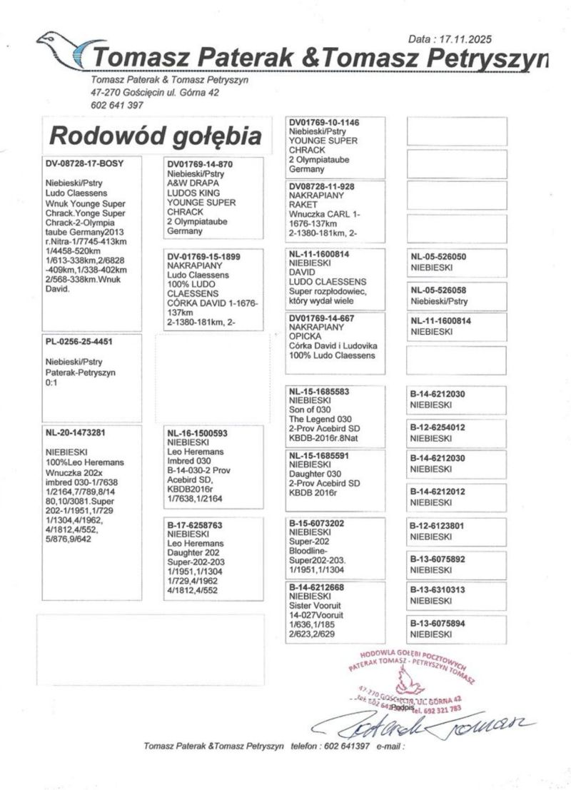 Płeć: samica Hodowca - rasa: oryg. Tomasz Paterak & Tomasz Petryszyn Zakończenie: 19.12.2025 godz. 19:30