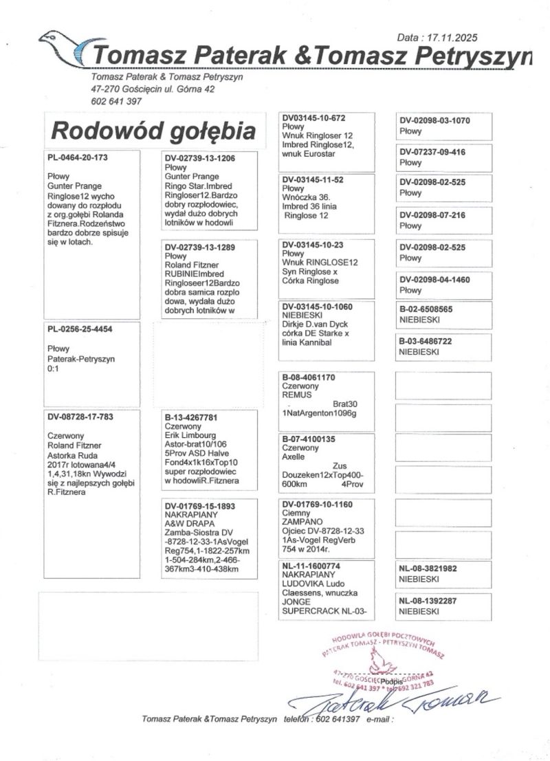 Płeć: samica Hodowca - rasa: oryg. Tomasz Paterak & Tomasz Petryszyn Zakończenie: 19.12.2025 godz. 19:28