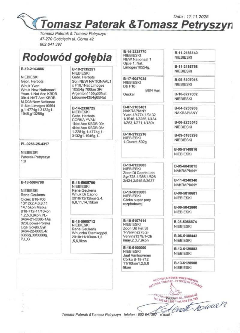 Płeć: samica Hodowca - rasa: oryg. Tomasz Paterak & Tomasz Petryszyn Zakończenie: 19.12.2025 godz. 19:04