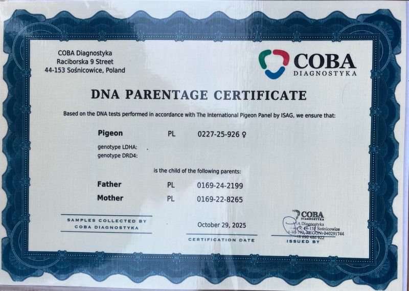 PL-0227-25-926 100% Macel Aelbrecht - Rafał Pasoń - certyfikat DNA
