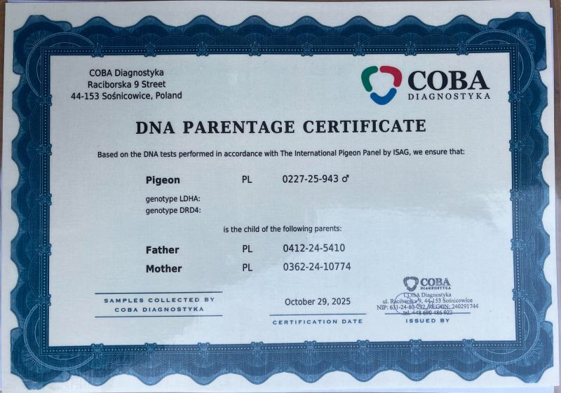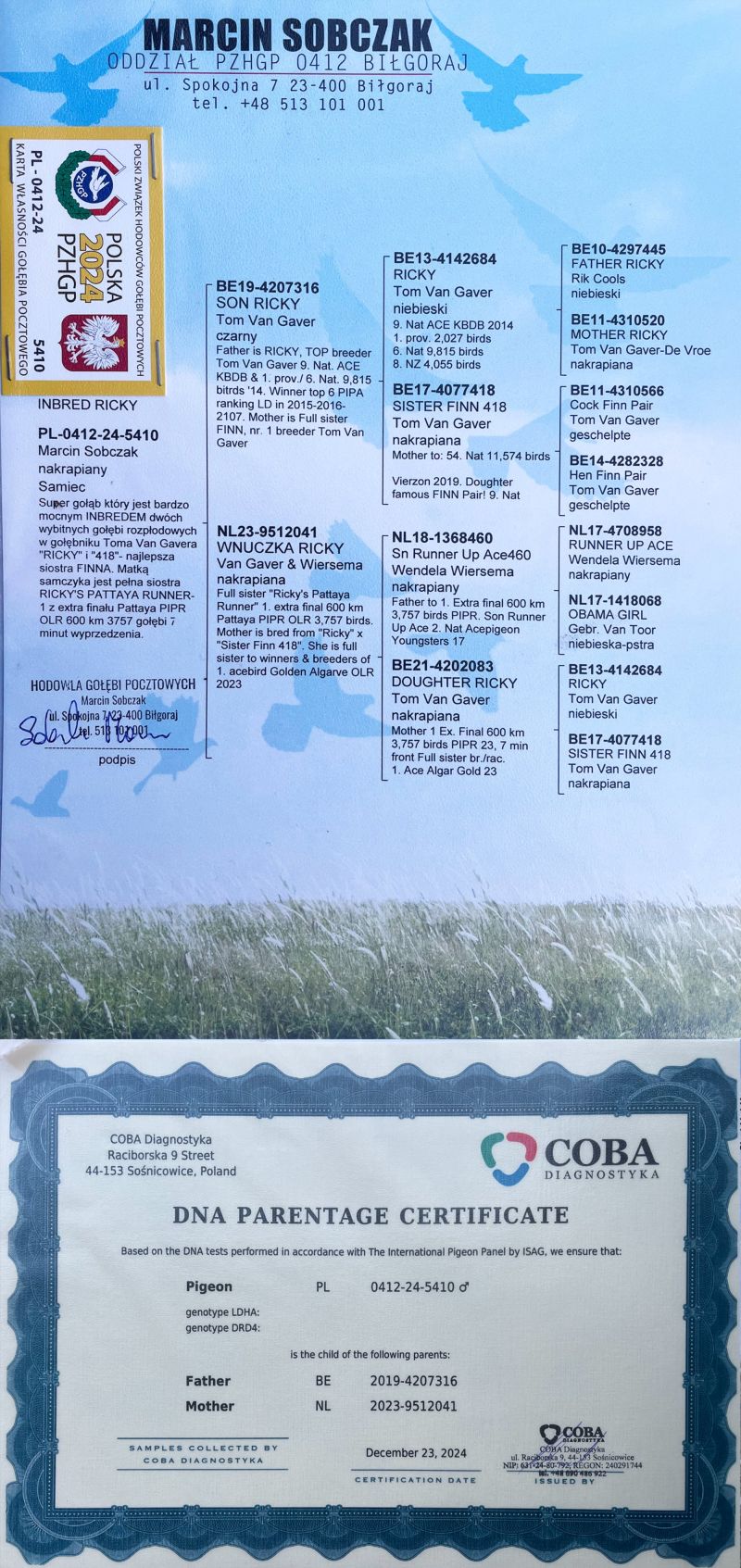 PL-0227-25-943 RICKY Tom Van Gaver x BLACK PEARL Hardy Kruger - certyfikat DNA