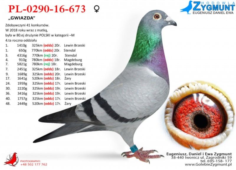 Profesjonalna hodowla z wieloletnim doświadczeniem, posiadająca w swoim stadzie materiał najwyższej światowej klasy. Więcej informacji w załączonych materiałach oraz pod nr tel. 792-175-024 Oferowany gołąb to prawdopodobnie SAMIEC. Płeć pisana orientacyjnie Wysyłka 100 zł