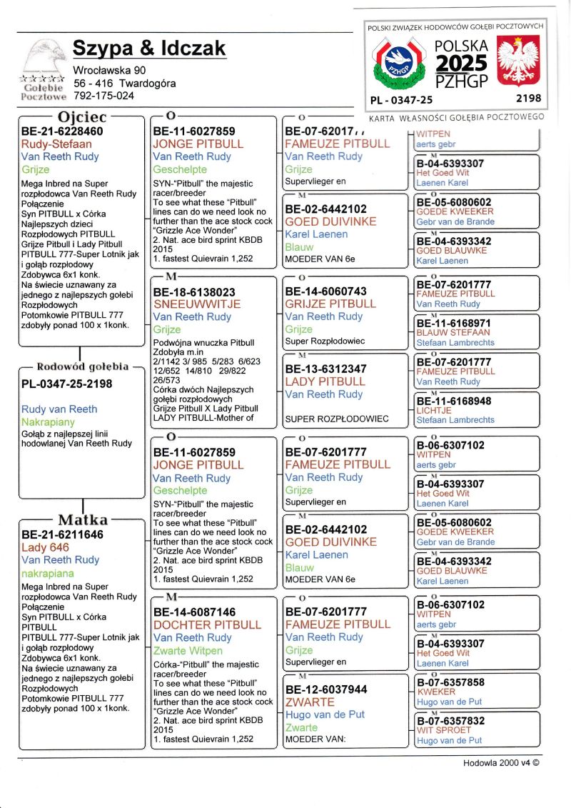 Profesjonalna hodowla z wieloletnim doświadczeniem, posiadająca w swoim stadzie materiał najwyższej światowej klasy. Więcej informacji w załączonych materiałach oraz pod nr tel. 792-175-024 Oferowany gołąb to prawdopodobnie SAMIEC. Płeć pisana orientacyjnie Wysyłka 100 zł