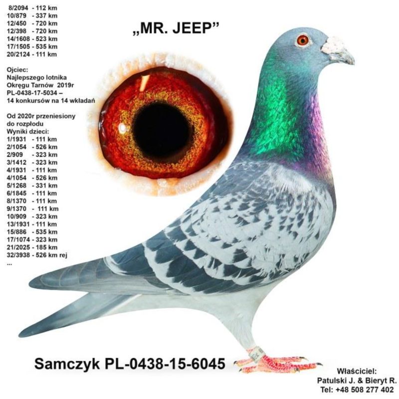 Samczyk od Robert Bieryt bardzo ładny w budowie i pięknym oku. Samczyk ten jest synem jego złotej pary Mr.Jeep i Laydy Victoria