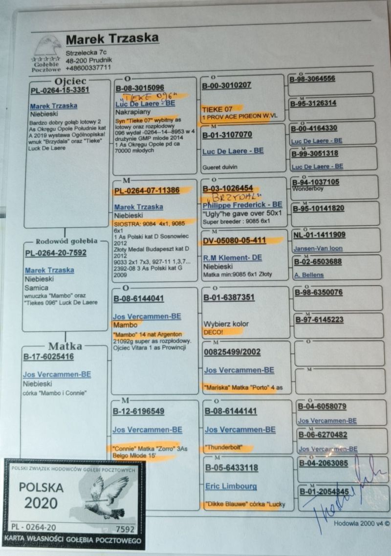 Oryginalny gołąb z hodowli Marka Trzaski - Brzydal na Verkammen bardzo ładna w budowie i pięknym oku. Szczegóły pochodzenia w rodowodzie.Polecam do dalszej hodowli gołąb po kuracjach gotowy do parowania, transport kurierem ok 100-150 zł