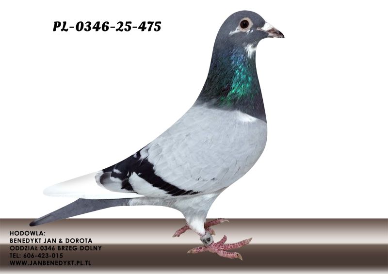 PL-0346-25-475 oryg. Benedykt Jan i Dorota 2024r. Mistrz Okręgu kat A i GMP Młode 3 i 4-Zespół Lotników Polski HGP 2-przod. Mistrzostw Polski Kat. „B” 191 x Mistrz i Vice Mistrz Oddziału. Linia:„Inbred Faraon x Bombek –Van De Eijte”