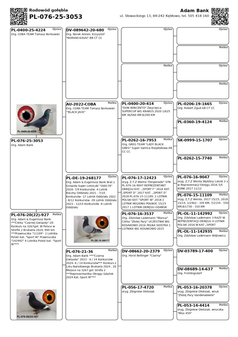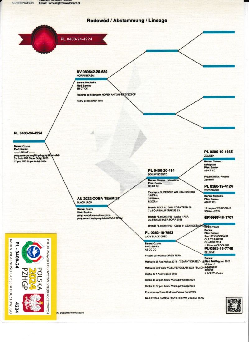 Oryginalny gołąb z hodowli Adama Bank z Oddziału 076 Wejherowo. Więcej informacji w rodowodzie i pod numerem 505-418-160. Koszt wysyłki 150zł.