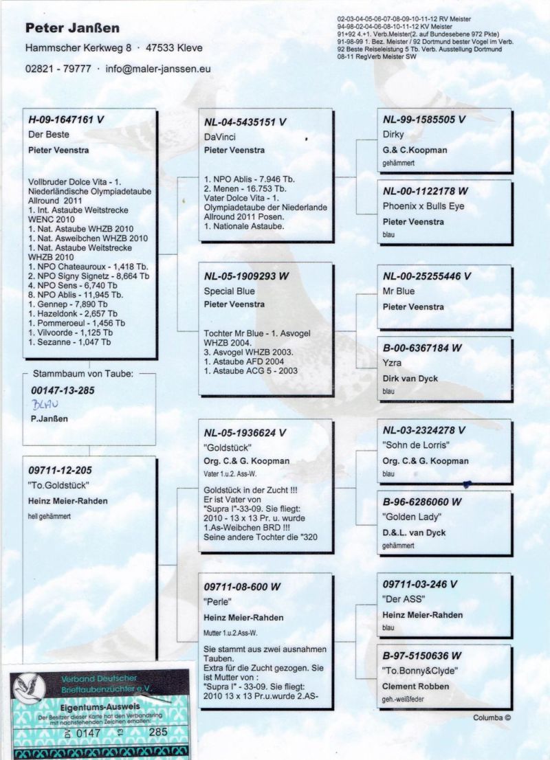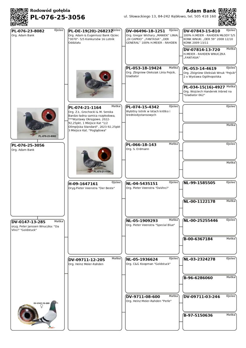 Oryginalny gołąb z hodowli Adama Bank z Oddziału 076 Wejherowo. Więcej informacji w rodowodzie i pod numerem 505-418-160. Koszt wysyłki 150zł.