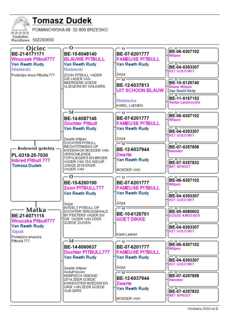 Mamy Państwu do zaoferowania gołębia 7030, Inbred Pitbull 777. Możliwość wykonania badań DNA na koszt kupującego. Więcej informacji pod numerem 502 283 650.