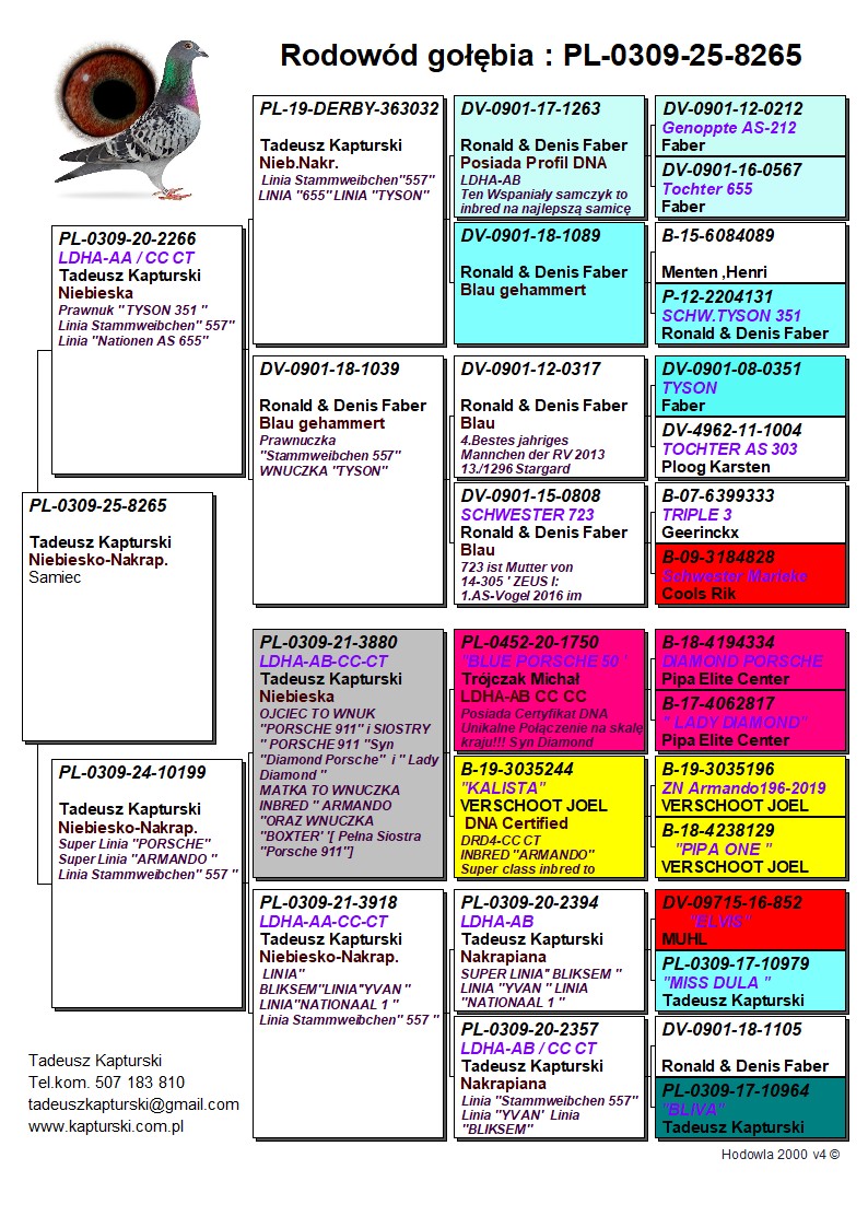 Oryginalny gołąb z hodowli Tadeusza Kapturskiego. Na życzenie certyfikat DNA. Szczegóły pochodzenia w rodowodzie. Więcej informacji pod nr tel.: 507183810 *transport kurier 165 zł