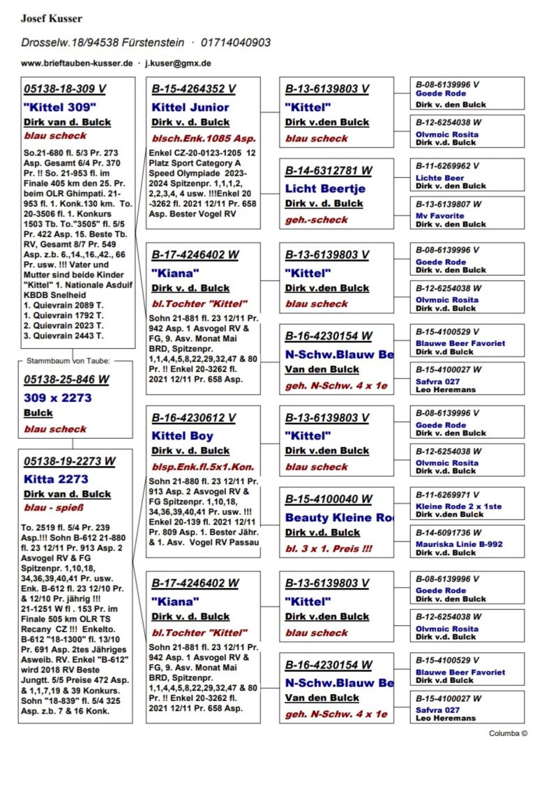 DV-05138-25-846 Dirk van den Bulck inbred "Kiana" B-17-4246402 jedna z najlepszych samic rozplodowych kol.Josef Kusser
