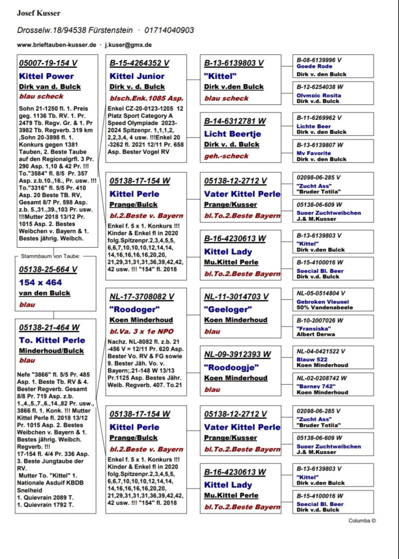 Oryginalny gołąb z hodowli kolegi Josef Kusser, najprawdopodobniej samczyk.Goląb przebywa jeszcze w Niemczech,możliwość transportu z Niemiec do Polski.Szczegóły pochodzenia w rodowodzie.Zakończenie aukcji 17.12.2025.