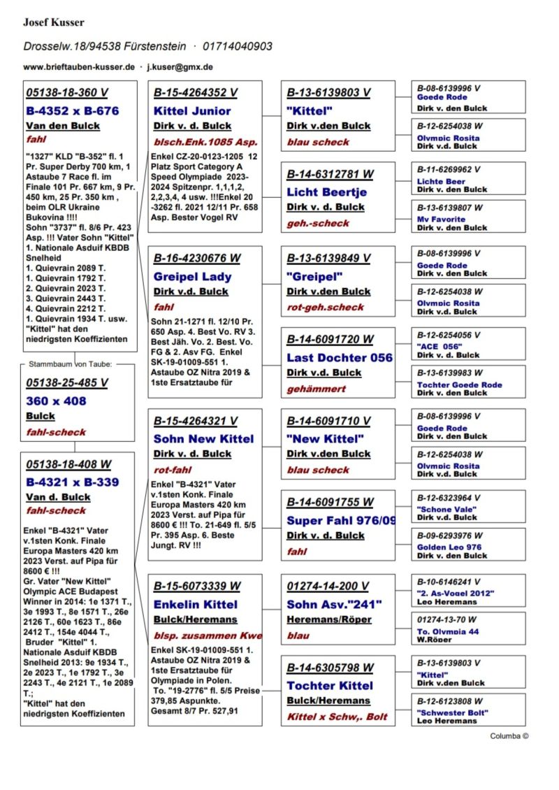 DV-05138-25-485 Dirk v.d. Bulck/Heremans (Kittel/Greipel)- Josef Kusser 4 miejsce w Niemczech gołębi mlodych 2025!