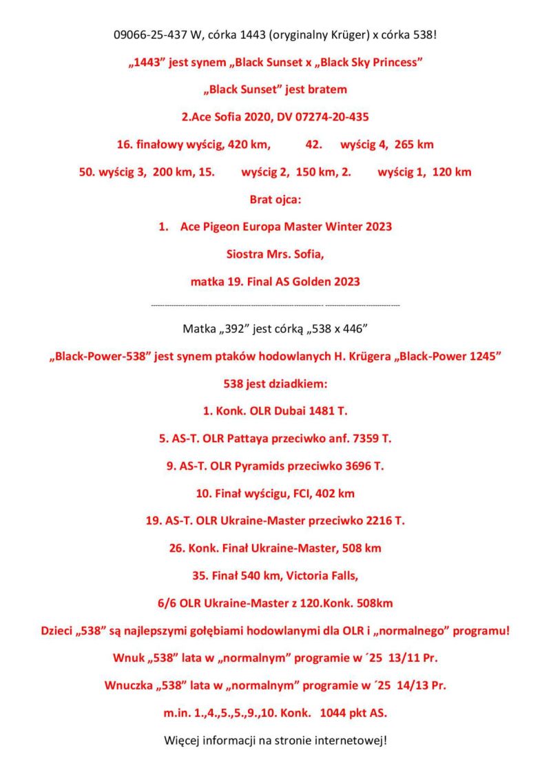 Młoda samica z Hodowli Friedhelm Peitz 100% H.Kruger z lini BLACK POWER!Szczegóły w rodowodzie oraz opisie!Koszt wysyłki 150 zł(1-3 szt)