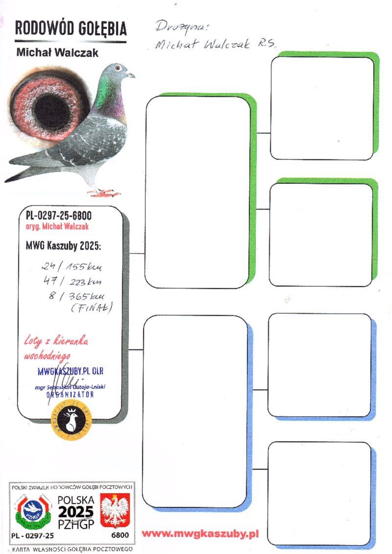 Gołąb (8 MIEJSCE z lotu Finałowego) brał udział w zawodach na Wspólnym Gołębniku KASZUBY. Więcej informacji w rodowodzie i załącznikach. Kontakt do Właściciela Gołębnika tel.601686344 (Sebastian Ostoja-Lniski). Informujemy poza tym, że rozpoczęły się zapisy na sezon 2026. Serdecznie zapraszam do rywalizacji..... Uwaga! Koszty związane z transportem pokrywa nabywca gołębia. W zależności od kuriera wynoszą one około 150zł. Można również odebrać gołębia osobiście. Powyżej sylwetki gołębia znajduje się video z jego prezentacją.