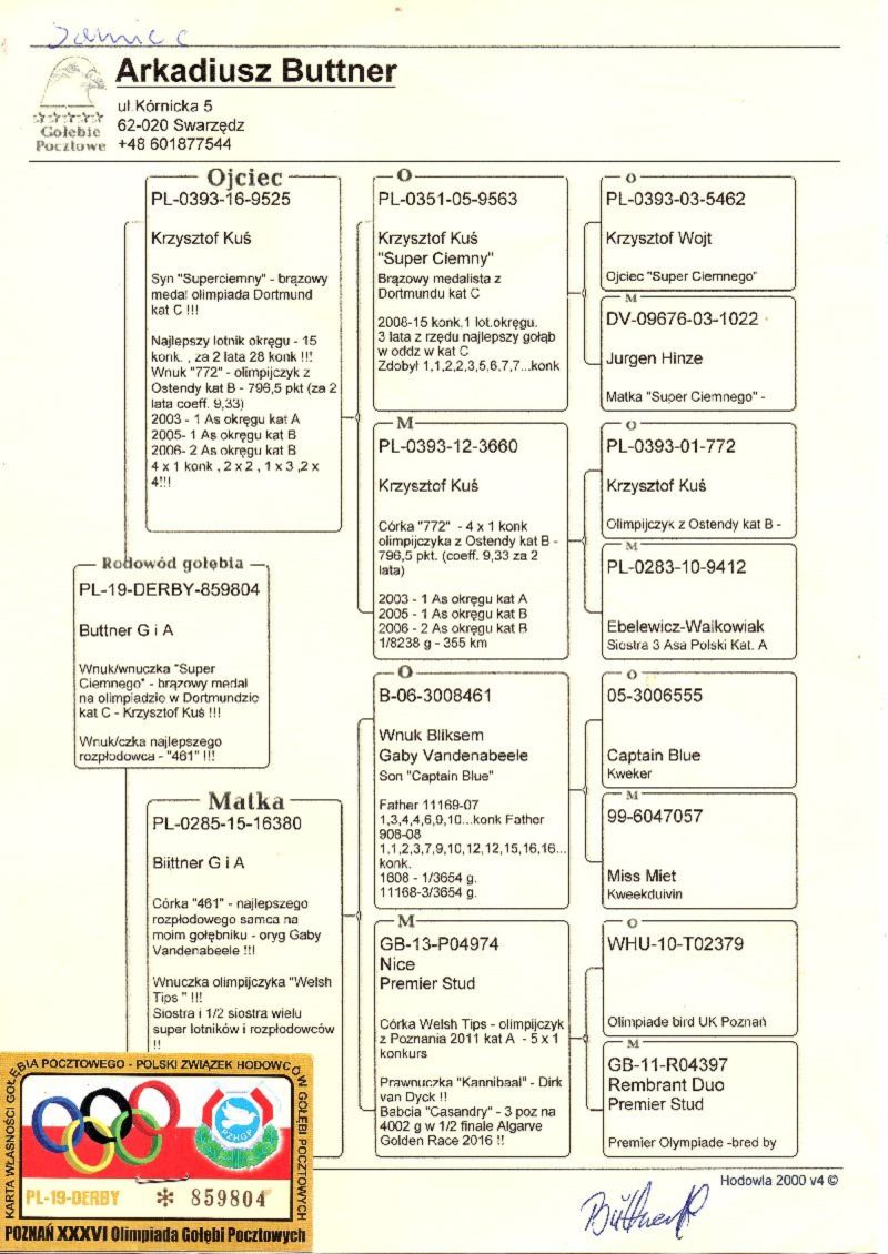 Gołąb (23 MIEJSCE z lotu Finałowego) brał udział w zawodach na Wspólnym Gołębniku KASZUBY. Więcej informacji w rodowodzie i załącznikach. Kontakt do Właściciela Gołębnika tel.601686344 (Sebastian Ostoja-Lniski). Informujemy poza tym, że rozpoczęły się zapisy na sezon 2026. Serdecznie zapraszam do rywalizacji..... Uwaga! Koszty związane z transportem pokrywa nabywca gołębia. W zależności od kuriera wynoszą one około 150zł. Można również odebrać gołębia osobiście. Powyżej sylwetki gołębia znajduje się video z jego prezentacją.