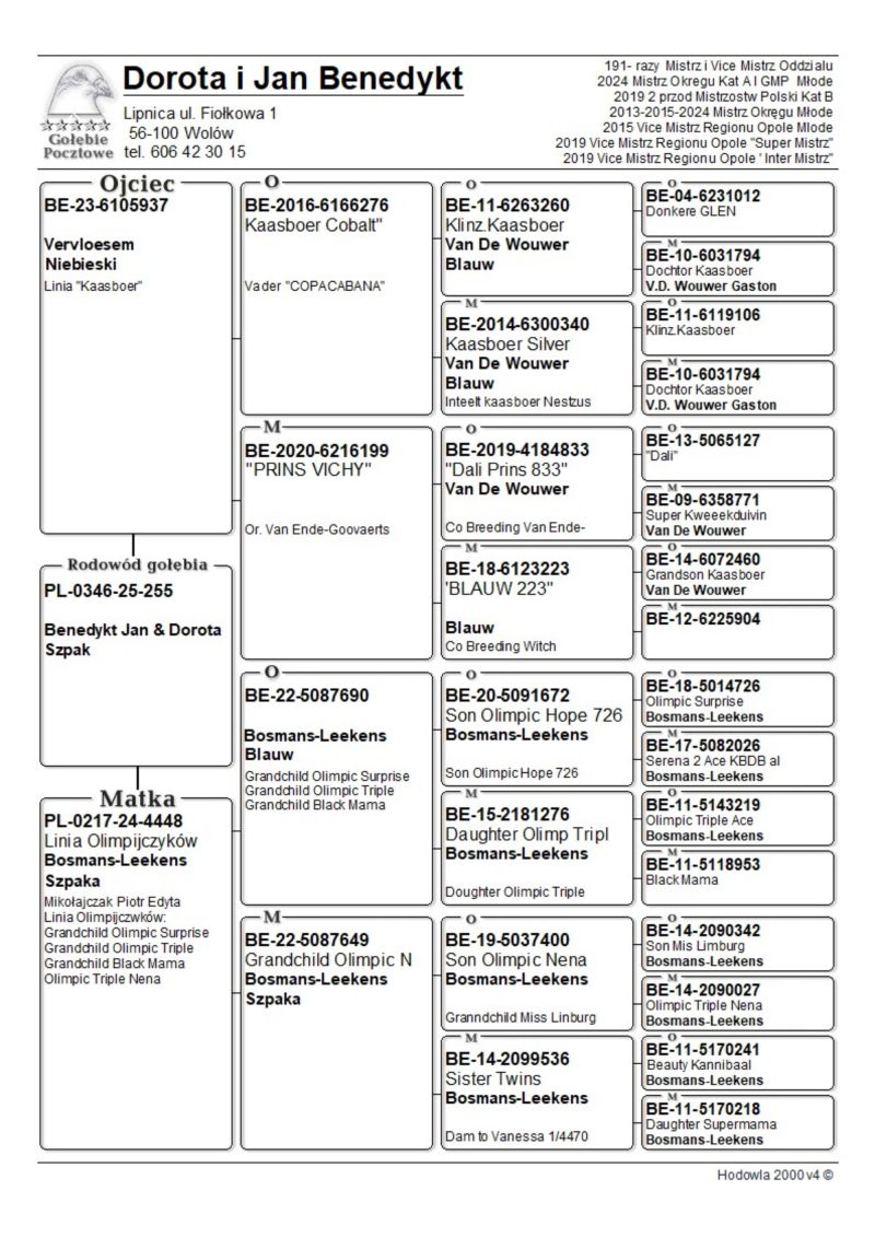 PL-0346-25-255 oryg. Benedykt Jan i Dorota 2024r. Mistrz Okręgu kat A i GMP Młode