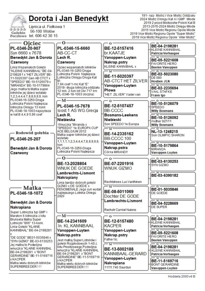 PL-0346-25-207 oryg. Benedykt Jan i Dorota 2024r. Mistrz Okręgu kat A i GMP Młode