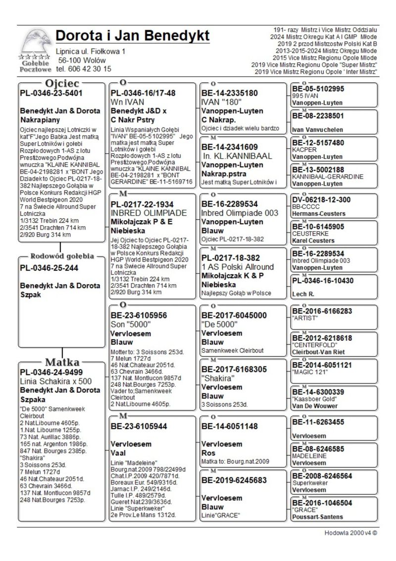 PL-0346-25-244 oryg. Benedykt Jan i Dorota 2024r. Mistrz Okręgu kat A i GMP Młode