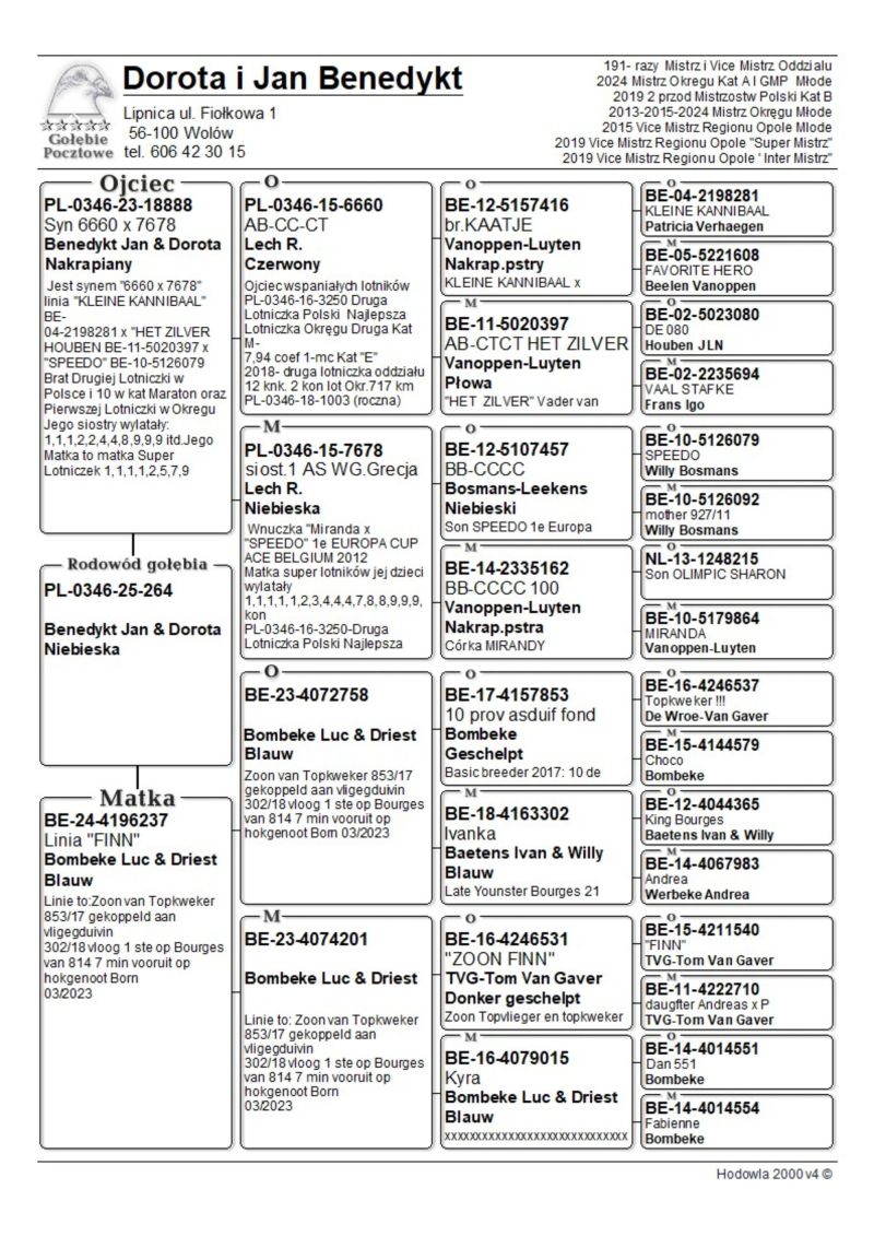 PL-0346-25-264 oryg. Benedykt Jan i Dorota 2024r. Mistrz Okręgu kat A i GMP Młode