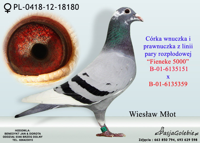 Gołąb z gołębnika Doroty i Jana Benedykt. Szczegóły pochodzenia w rodowodzie. Więcej informacji pod nr tel.: 606 423 015 i na stronie pasjagolebie.pl/?page_id=119
