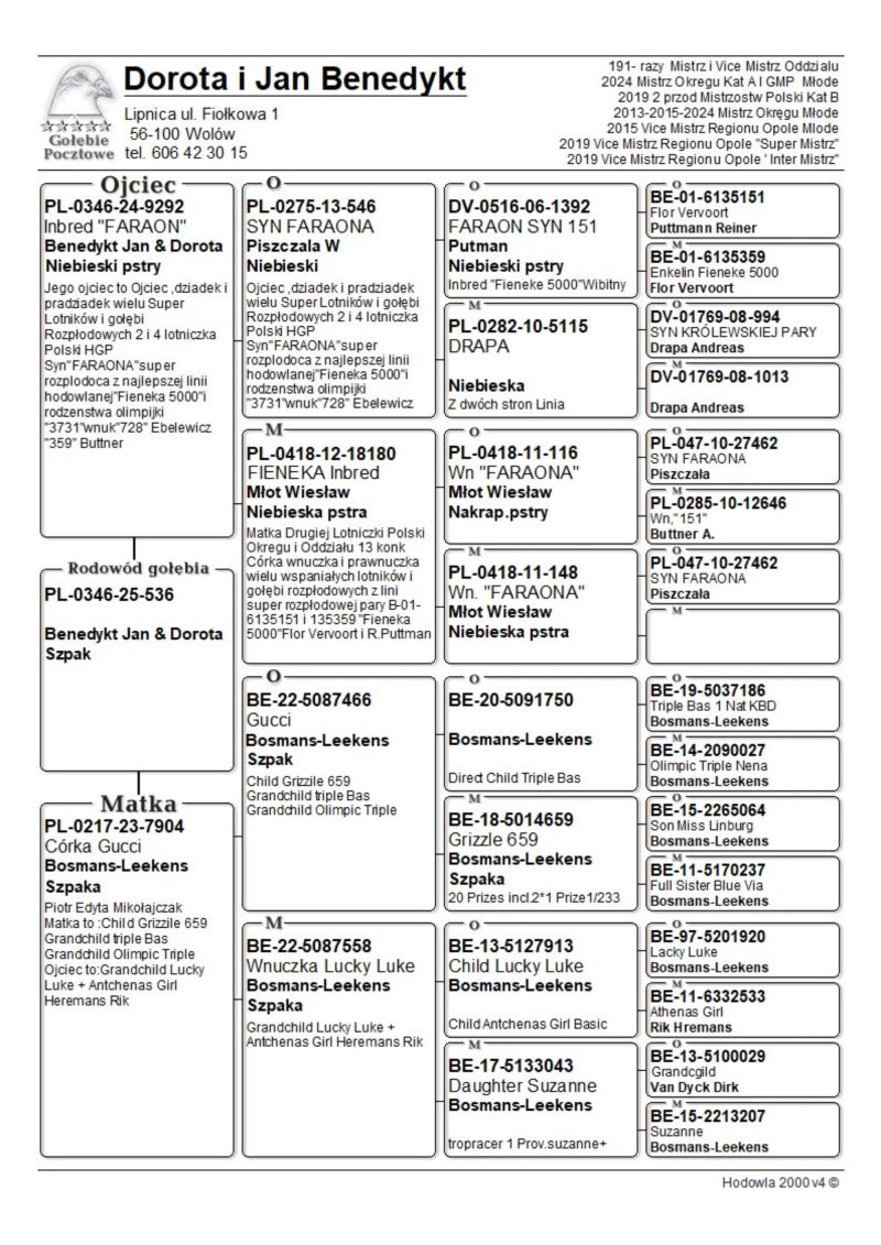 PL-0346-25-536 oryg. Benedykt Jan i Dorota 2024r. Mistrz Okręgu kat A i GMP Młode