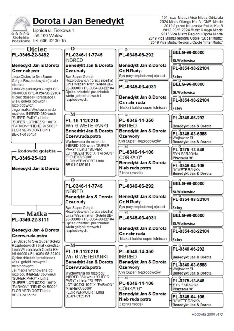 PL-0346-25-423 oryg. Benedykt Jan i Dorota 2024r. Mistrz Okręgu kat A i GMP Młode