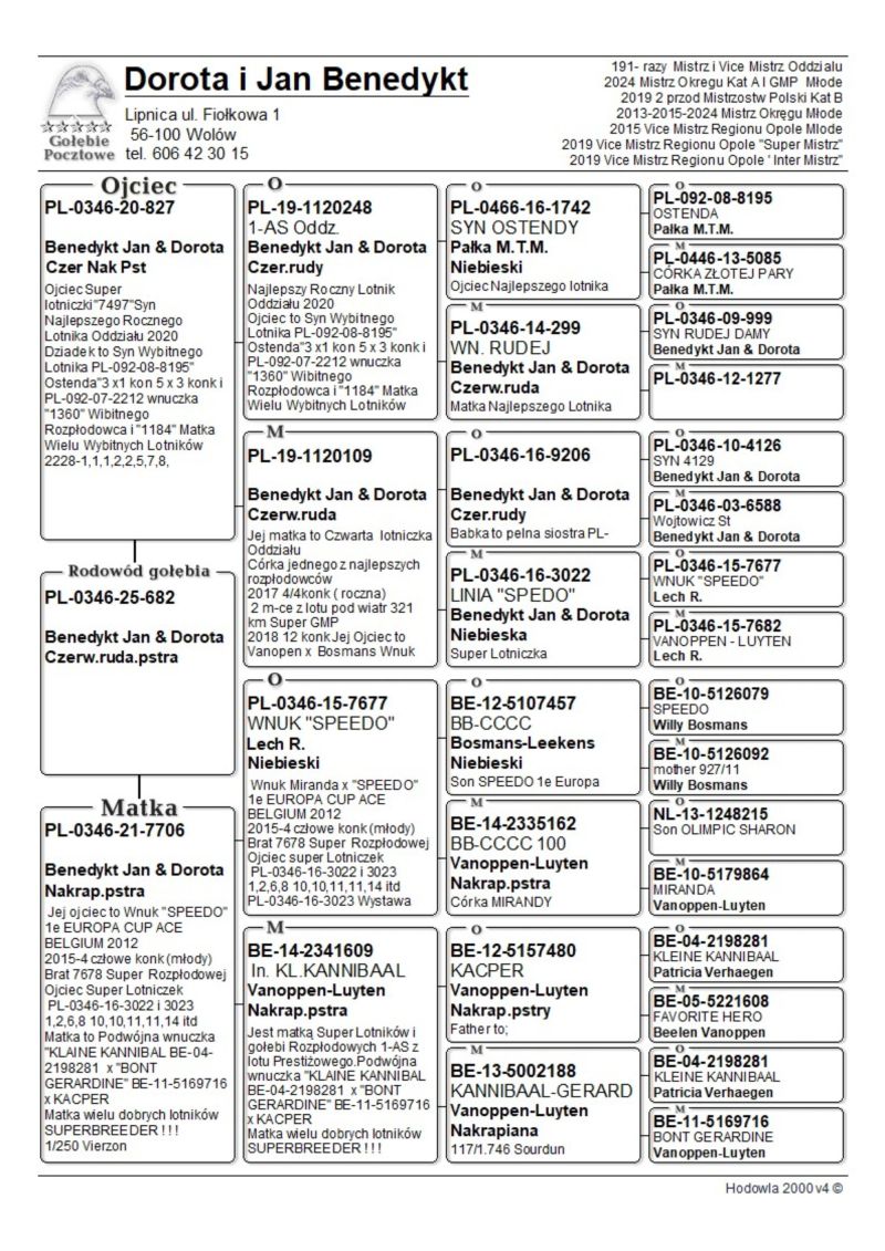 PL-0346-25-682 oryg. Benedykt Jan i Dorota 2024r. Mistrz Okręgu kat A i GMP Młode