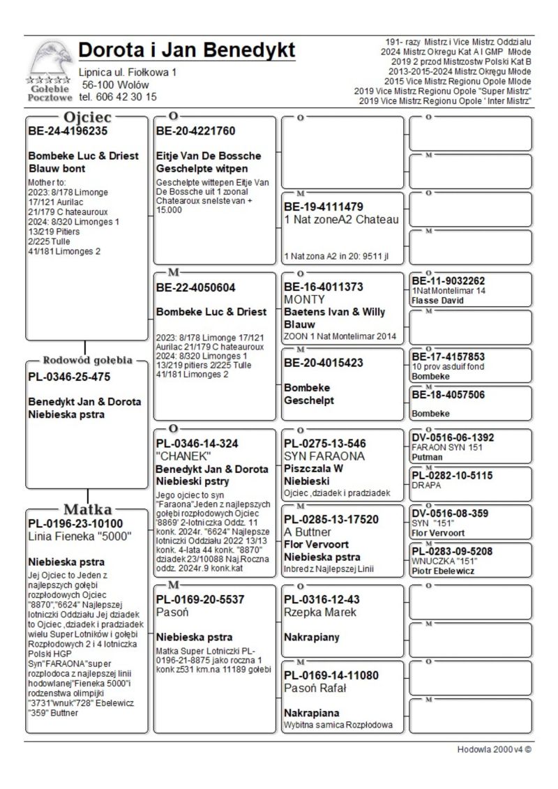PL-0346-25-475 oryg. Benedykt Jan i Dorota 2024r. Mistrz Okręgu kat A i GMP Młode
