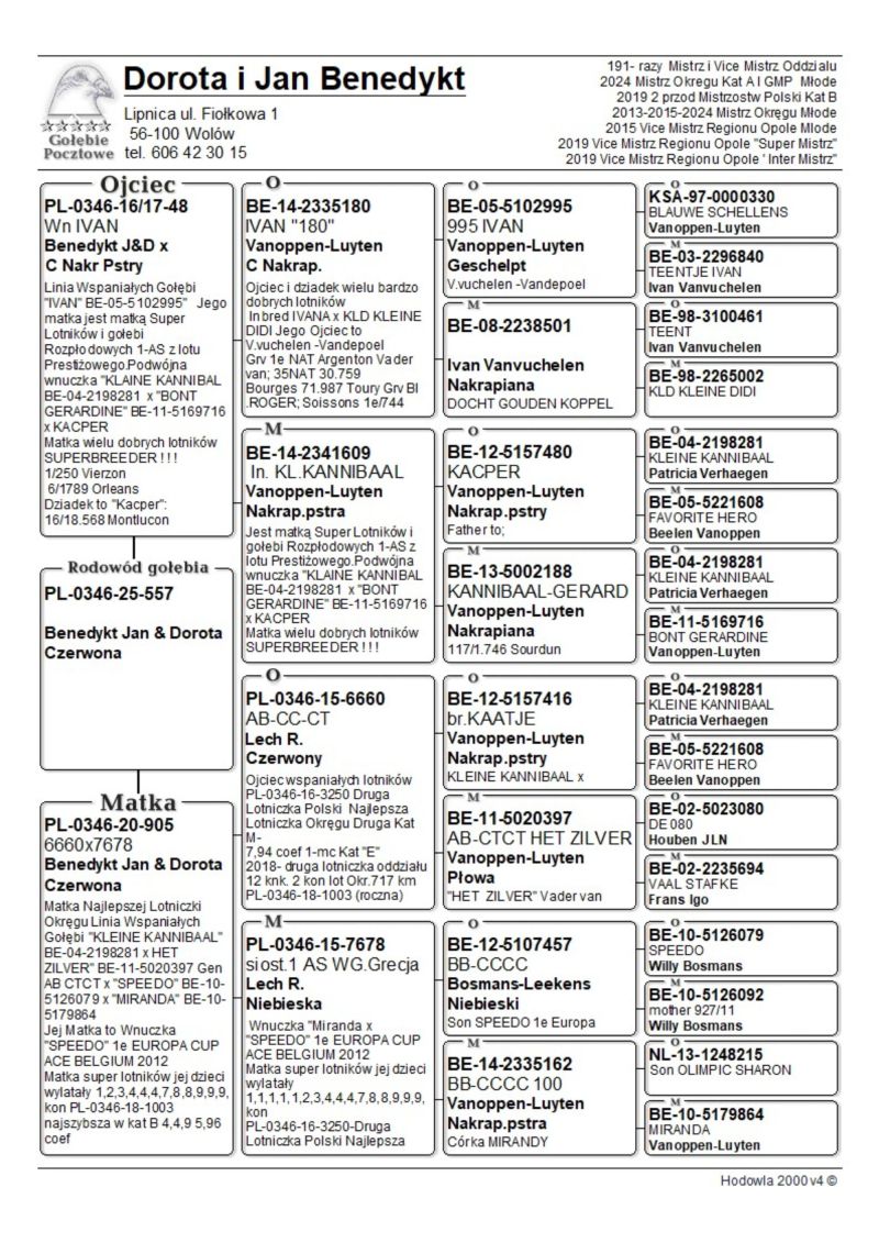 PL-0346-25-557 oryg. Benedykt Jan i Dorota 2024r. Mistrz Okręgu kat A i GMP Młode