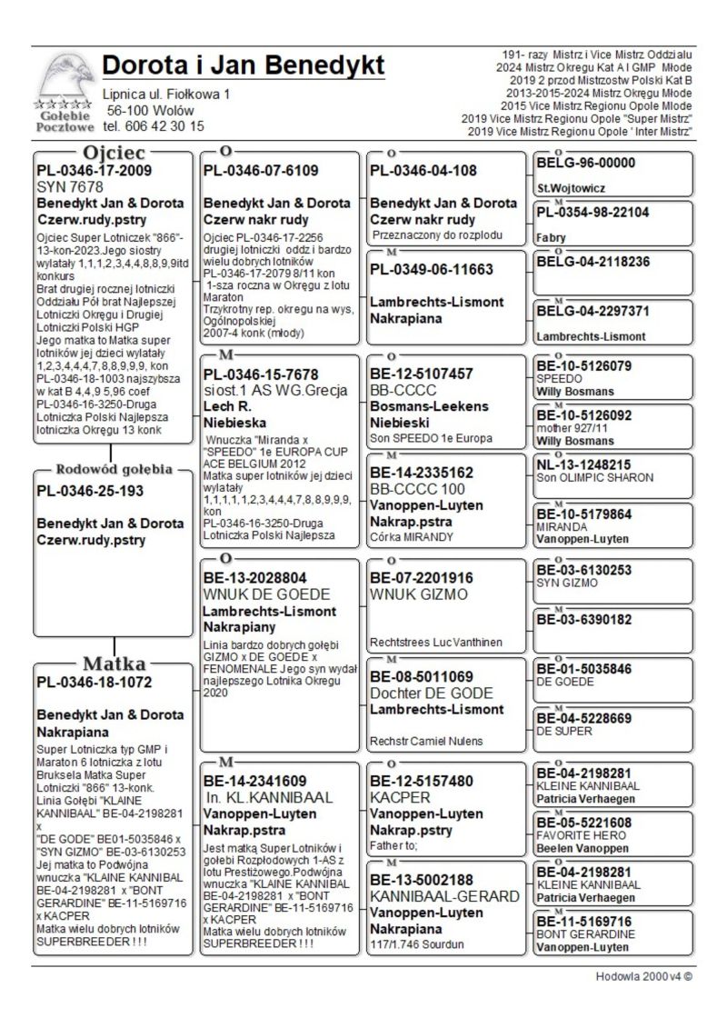 PL-0346-25-193 oryg. Benedykt Jan i Dorota 2024r. Mistrz Okręgu kat A i GMP Młode