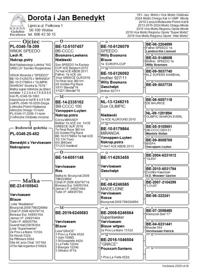 PL-0346-25-452 oryg. Benedykt Jan i Dorota 2024r. Mistrz Okręgu kat A i GMP Młode