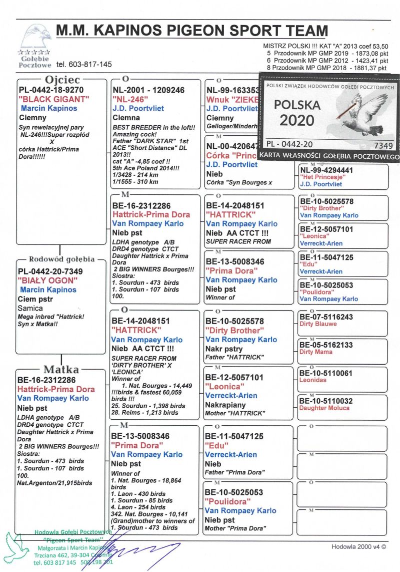 PL-0442-20-7349 Wnuczka top rozpłodowca!! NL-246! Inbred Hattrick! Biały ogon!