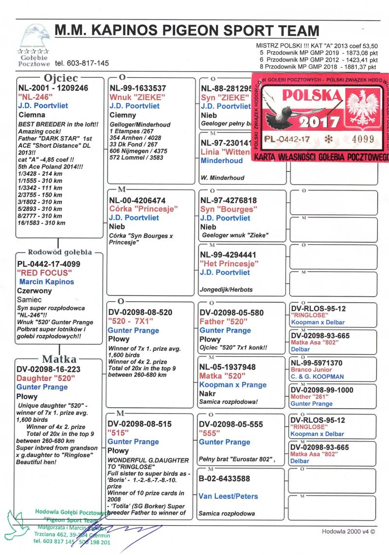 PL-0442-17-4099 UNIKAT! Syn NL-246! Wnuk 520 7x1 konk Gunter Prange!! z cert DNA!!!