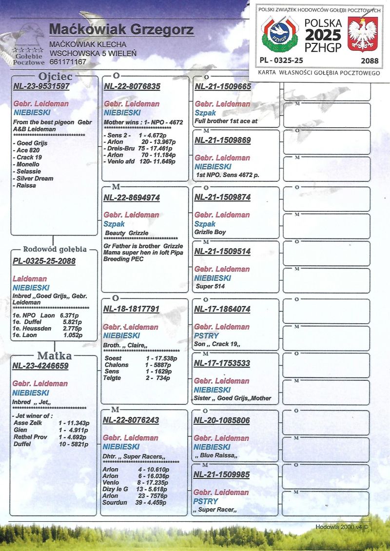 Płeć: młody gołąb Hodowca - rasa: G.M Zakończenie: 21.12.2025 godz. 18:58