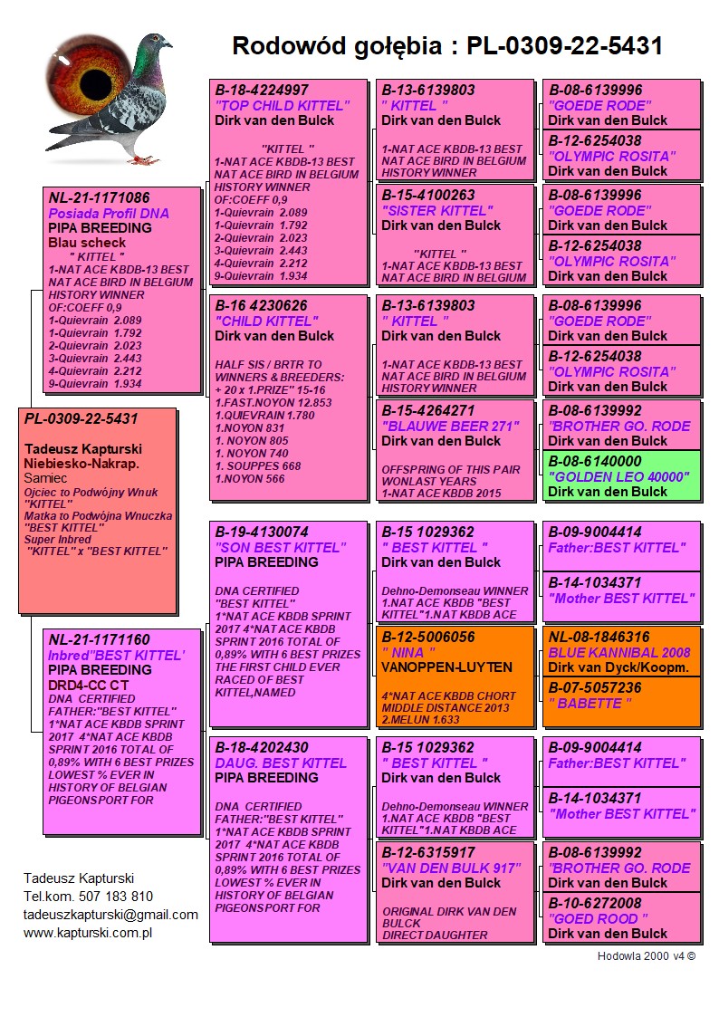Oryginalny gołąb z hodowli Tadeusza Kapturskiego. Na zyczenie certyfikat DNA Szczegóły pochodzenia w rodowodzie. Więcej informacji pod nr tel.: 507183810 *transport kurier 165 zł
