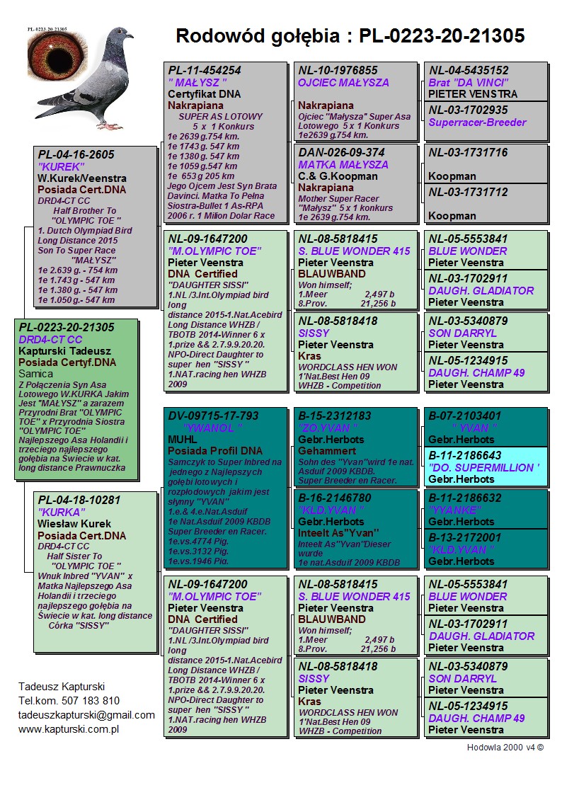 Oryginalny gołąb z hodowli Tadeusza Kapturskiego. Na zyczenie certyfikat DNA Szczegóły pochodzenia w rodowodzie. Więcej informacji pod nr tel.: 507183810 *transport kurier 165 zł