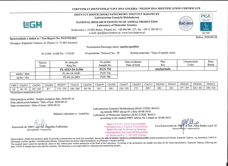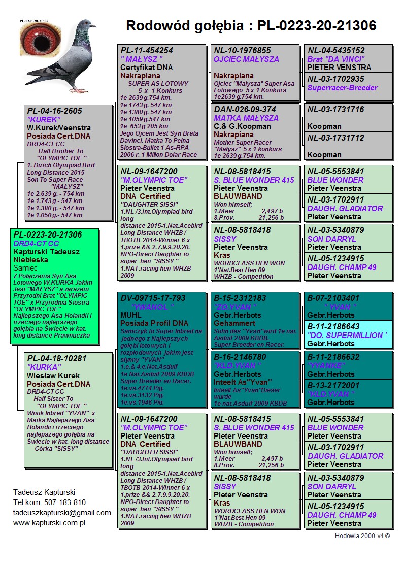 Oryginalny gołąb z hodowli Tadeusza Kapturskiego. Posiada certyfikat DNA Szczegóły pochodzenia w rodowodzie. Więcej informacji pod nr tel.: 507183810 *transport kurier 165 zł