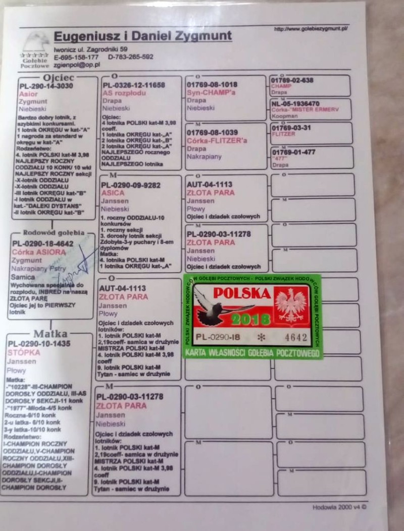 REDUKCJA ROZPŁODU Oryginalny gołąb z hodowli Eugeniusz i Daniel Zygmunt Szczegóły pochodzenia w rodowodzie. Więcej informacji pod nr tel.: 602338679