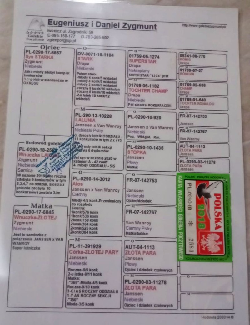 REDUKCJA ROZPŁODU Oryginalny gołąb z hodowli Eugeniusz i Daniel Zygmunt Szczegóły pochodzenia w rodowodzie. Więcej informacji pod nr tel.: 602338679