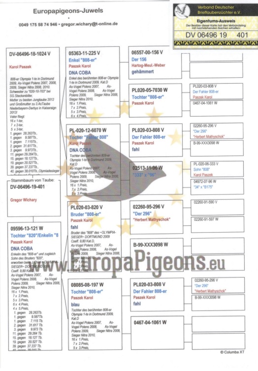 DV-06496-19-401 - oryg. Europapiegeons Juwels Gregor Wichary, prawnuk Paszek 808